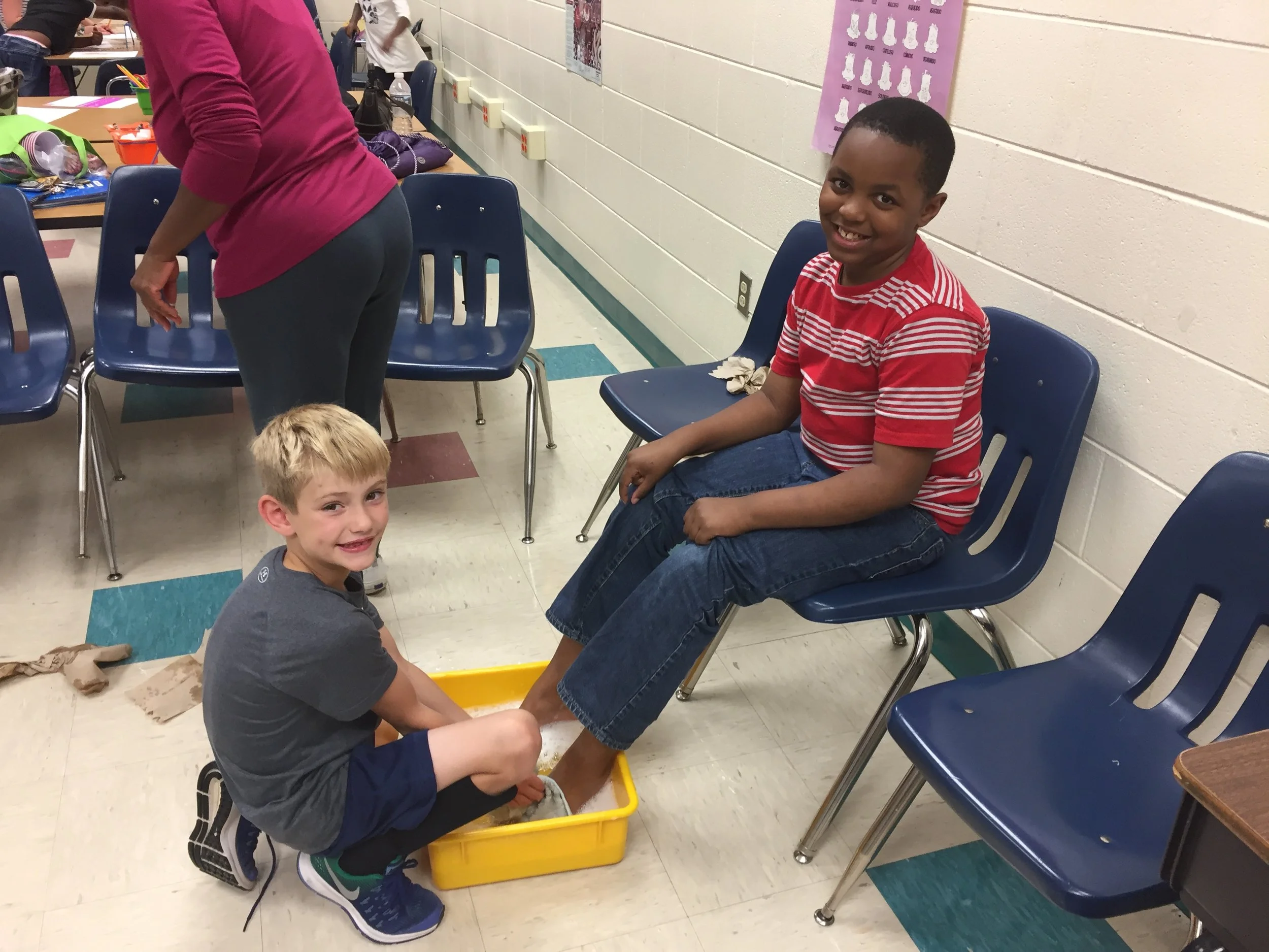 In John 13 Jesus provided a powerful example for his disciples to follow as he washed their feet. The king of kings and Lord of lords took the humbling position of a servant to teach his children that love must be sacrificial and often times uncomfortable. All Kindergartners through Preteens engaged in this Bible story as they listened and then acted in accordance with Jesus's words.